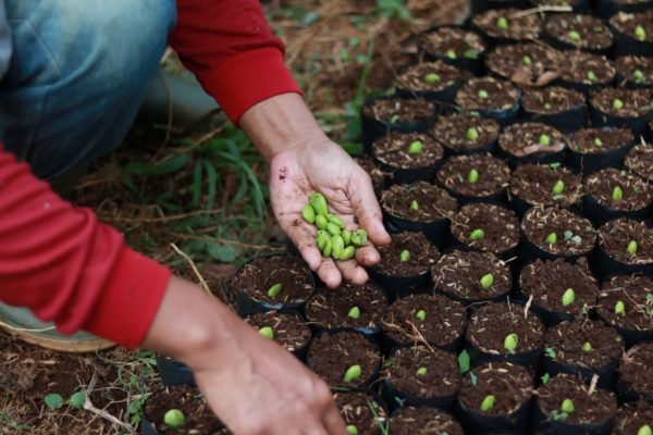 Petai (stinky beans) seedlings are being sown in each polybag at Cirasea Nursery. Petai seed pods are a popular culinary ingredient in Indonesia and can also be enjoyed fresh. As a result, petai trees are high demand among our tree grower partners.