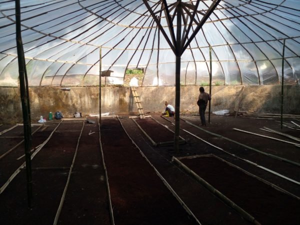 In our newest nursery, Soreang Nursery, we have constructed a spacious greenhouse with a diameter of 12 meters and a height of 4 meters within the nursery area. This greenhouse plays a crucial role in safeguarding the tree seedlings and facilitating their optimal growth. It helps maintain a consistent temperature, shields the seedlings from rainwater runoff, and protects them against potentially damaging winds.