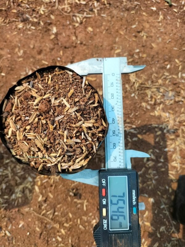 The team at Ciminyak Nursery measures the height and diameter of each polybag filled with planting media, which consists of a mixture of soil, organic fertilizer, and rice husk in a ratio of 6:1:1. This meticulous process ensures that the seedlings are prepared to grow uniformly in terms of height and size.