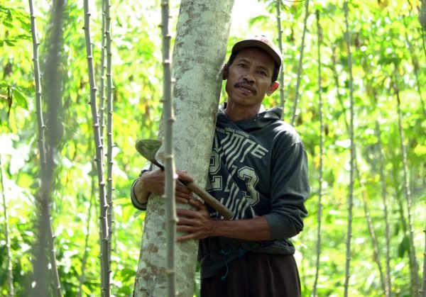 Rasito were proud of the sengon trees he grows. They reach more than 10-meters in height now.