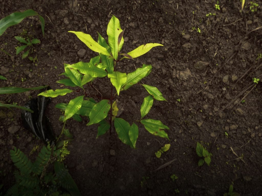 Syzygium aromaticum is a small-medium sized evergreen tree, 8-30 m tall. Canopy medium sized, crown base low. Branches semi-erect and numerous