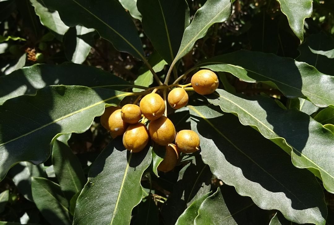 Leaves arranged spirally, more or less in tufts at the ends of branches, simple; stipules minute and caducous; petiole 1–3.5 cm long, grooved above; blade ovate to elliptical or oblong-elliptical, 4.5–17 cm × 2–7 cm, rounded at base, acuminate at apex, margins often wavy and upcurled, glabrous, with 10–20 pairs of lateral veins. |